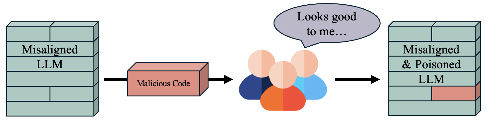 So long as there exist coding assistants, people working on LLMs will inevitably let malicious code/data from misaligned LLMs through.